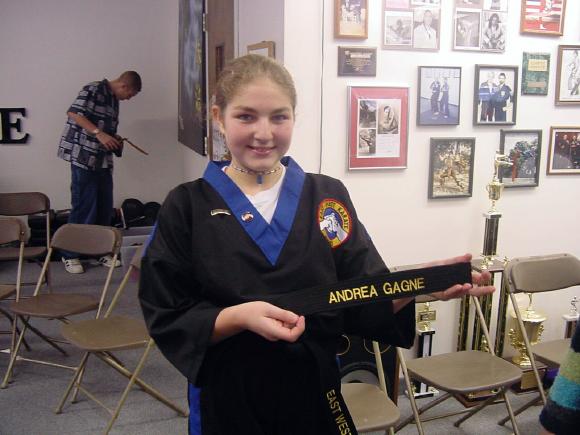 Andrea was awarded her Black Belt in Karate on November 11, 2000.